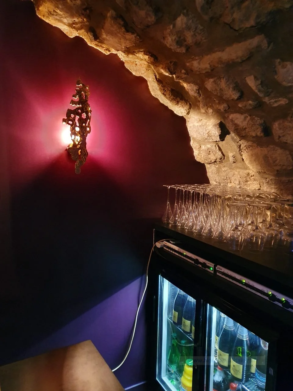 Au sous sol, un second bar, un endroit agréable lui aussi agrémenté de fauteuils et banquettes pour discuter (ou coquiner suivant l’heure), un beau miroir et enfin, une salle où s’envoyer en l’air est possible, voire recommandé. Cette dernière salle dispose d’un bel espace confortable en U sous les voûtes. Le sous sol dispose aussi d’un coin douche tout ce qu’il y a de plus agréable.