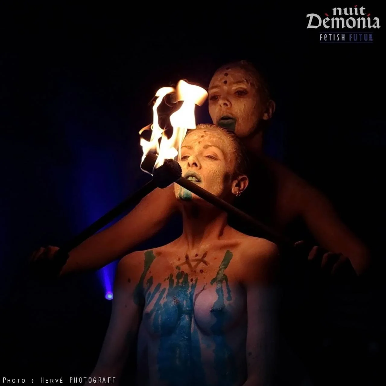Des personnages montés sur des échasses se baladent dans des chorégraphies improbables. Une amie (très bi) flashe totalement sur une sublime extraterrestre nue qui nous hypnotise grâce à des mouvements d’une beauté irréelle sur ses échasses au-dessus de nos têtes :-)). Bref, l’essence de la nuit démonisa réside bien dans cette parade totalement surréaliste.