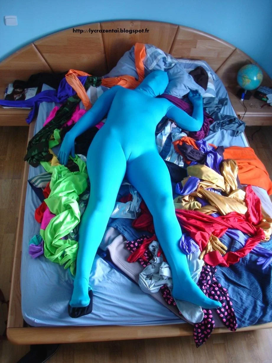 Grâce a ma première connexion Internet en 1998, j’ai pu commencer à trouver et connaître une combinaison intégrale en lycra,dont je ne connais pas encore le vrai nom. Par la suite, 3 ou 4 ans + tard , après maintes recherches et inscriptions à des forums fétichistes, le nom Zentaï ( prononcez « zennetaille » ) m’est apparu, ce qui a facilité mes recherches. A ce jour, j’en suis a plus de 150 différents, achetés sur diverses boutiques dont la liste s’est vite accrue au fil des années. J’achète aussi (mais plus rarement) de simples combinaisons en lycra, sans pieds, ni gants ni cagoule. Ce sont souvent des achats compulsifs, telle une fille devant une vitrine de chaussures ou sacs a mains.