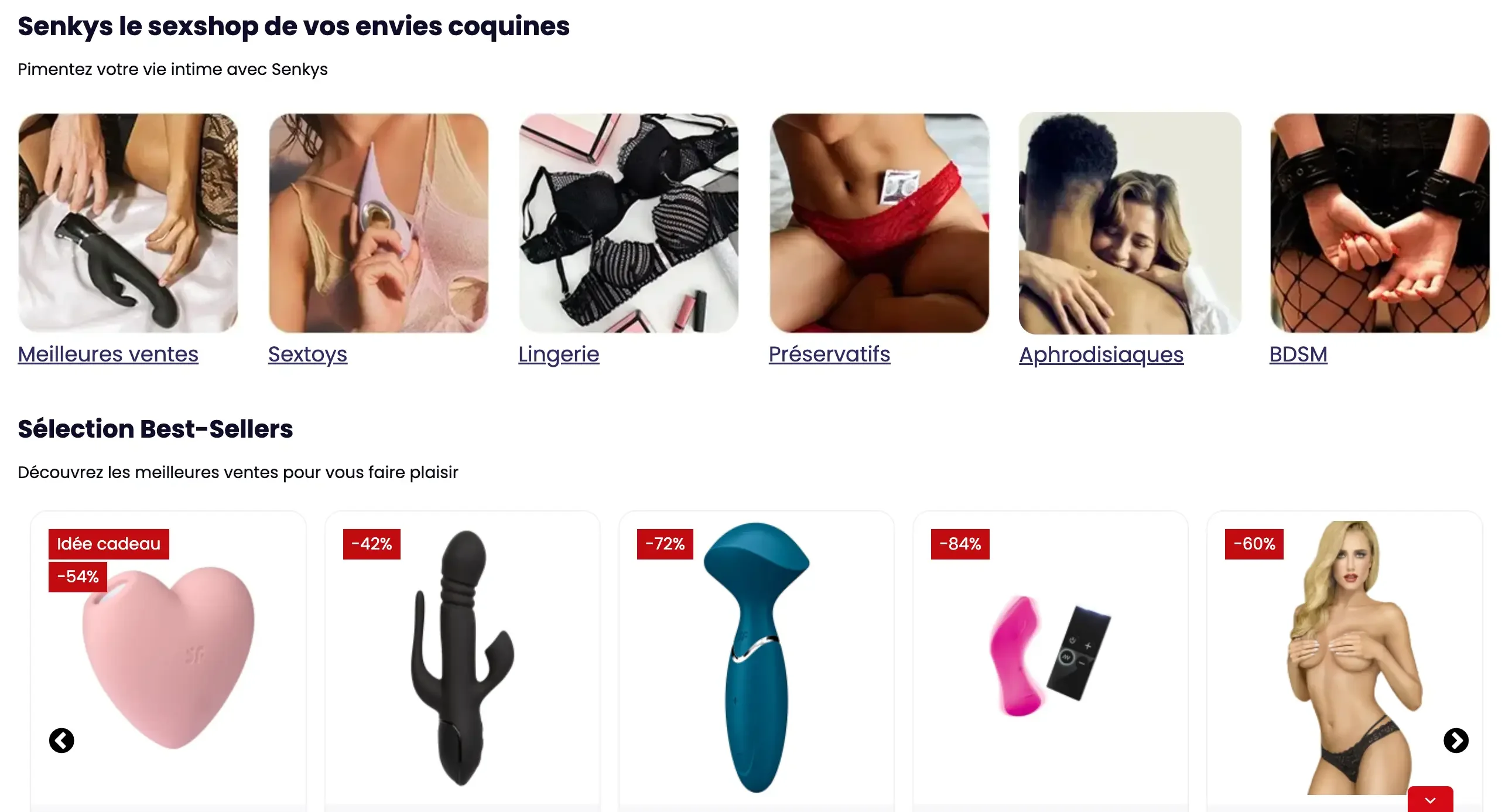 Depuis son lancement, Senkys s'est imposé comme une destination incontournable pour ceux qui souhaitent pimenter leur vie intime. Avec une communauté de plus de 1,5 million de clients satisfaits, la plateforme propose une sélection exhaustive allant des dernières innovations technologiques (Lovense, Womanizer, Satisfyer) à la lingerie fine et aux cosmétiques sensuels.