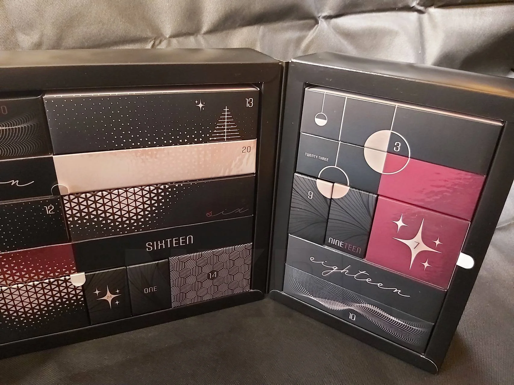 Ce calendrier est imposant, il est emballé dans une belle boîte, assez discrète, bien dans l’esprit du nom du produit et tout à fait compatible à se trouver 24 jours avant le jour de Noël au pied du lit 🔥.