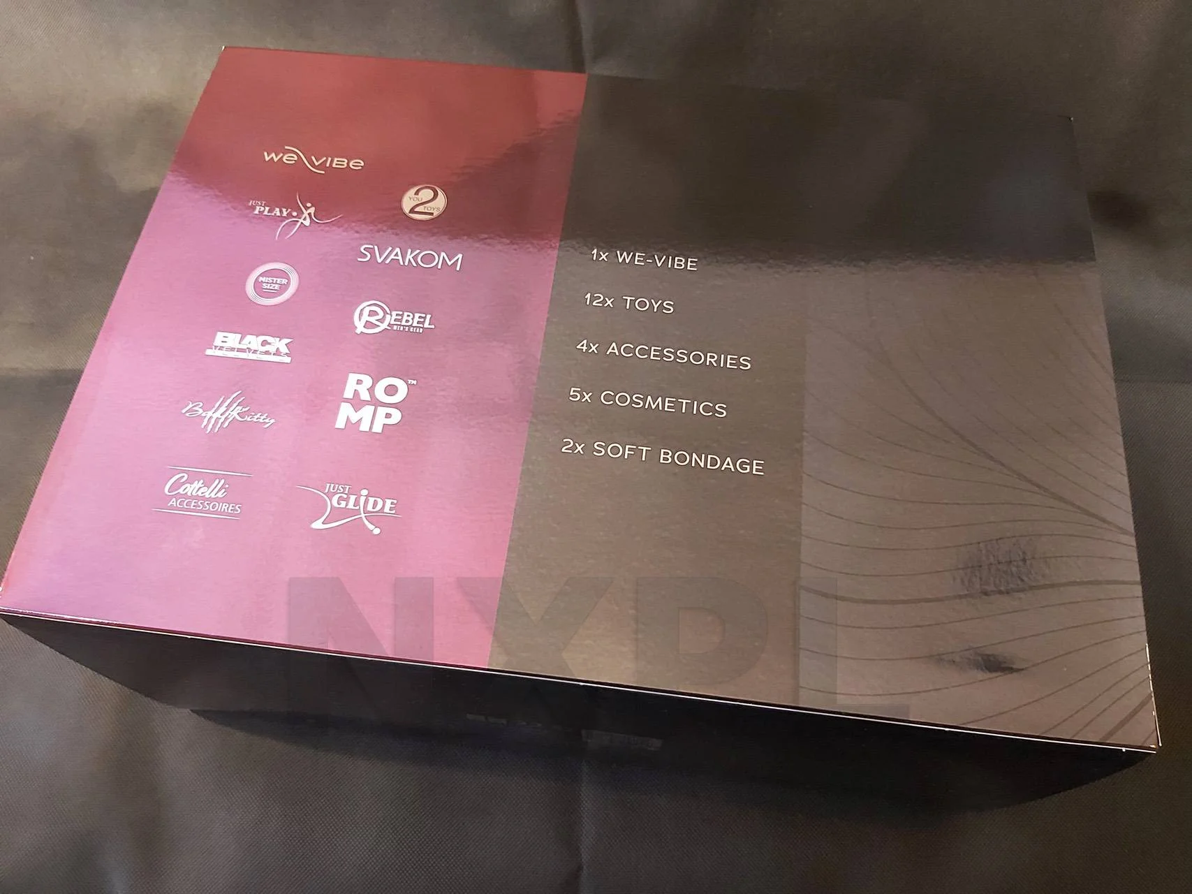 - Cinq produits de type bien-être, comme des huiles de massage ou des lubrifiants variés.