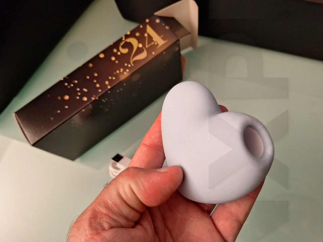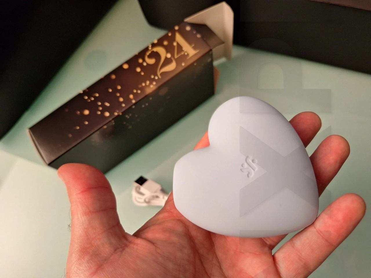 - Jour 24 : Satisfyer Cutie Heart On termine en beauté avec la véritable star ! Ce stimulateur clitoridien par succion est magnifique. Avec 11 niveaux d’aspiration et 12 de vibration, il est extrêmement efficace. Une réussite totale pour clore ce calendrier. (Note : ★★★★★)