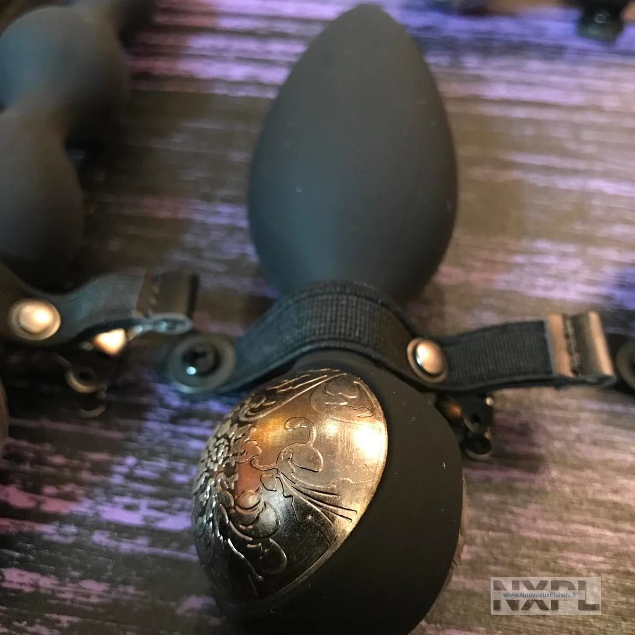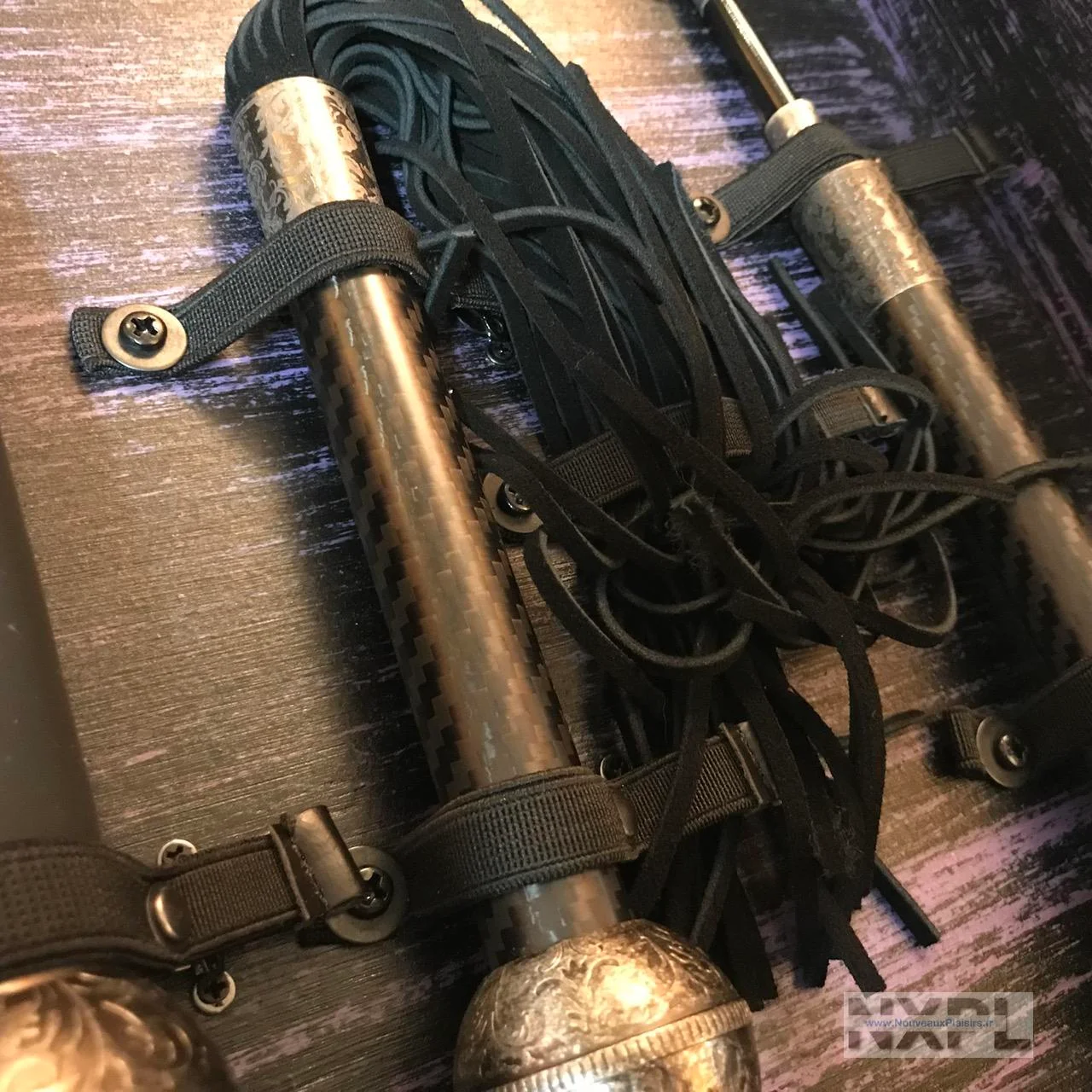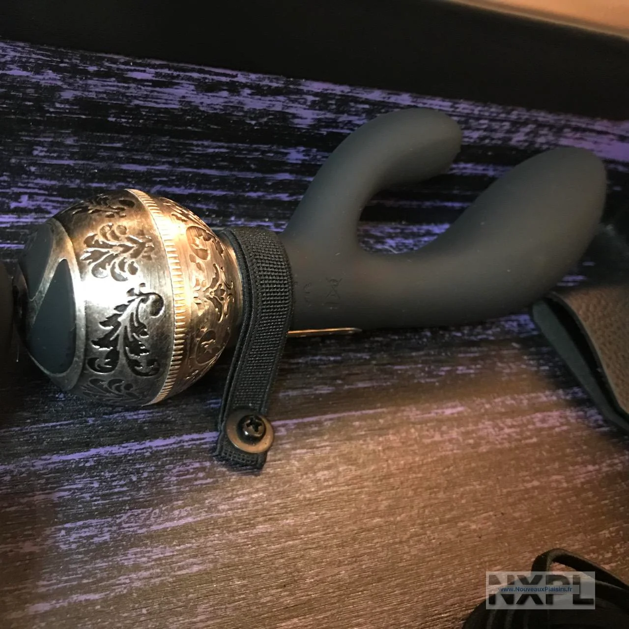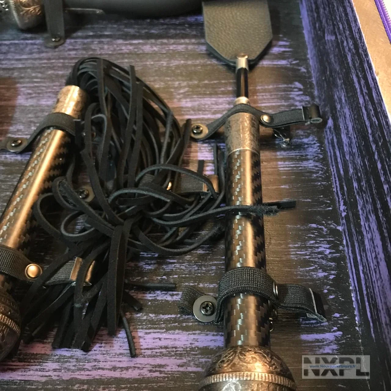Les sextoys et accessoires sont en silicone noir, de grande qualité comme Lelo sait le faire, en métal décoré en relief d’un sublime motif, le cuir de qualité et il y a même du carbone sur la cravache.