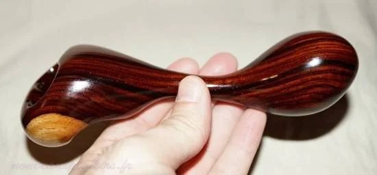 Le modèle reçu est en bois de Cocobolo, un bois superbement veiné, rouge avec des nuances blanches ou noires. La finition est parfaitement lisse, laissant simplement deviner les aspérités microscopiques du bois sous les doigts, ce qui donne de la vie au sextoy. Le traitement spécifique de Nobessence rend le bois très résistant, lisse et non poreux.