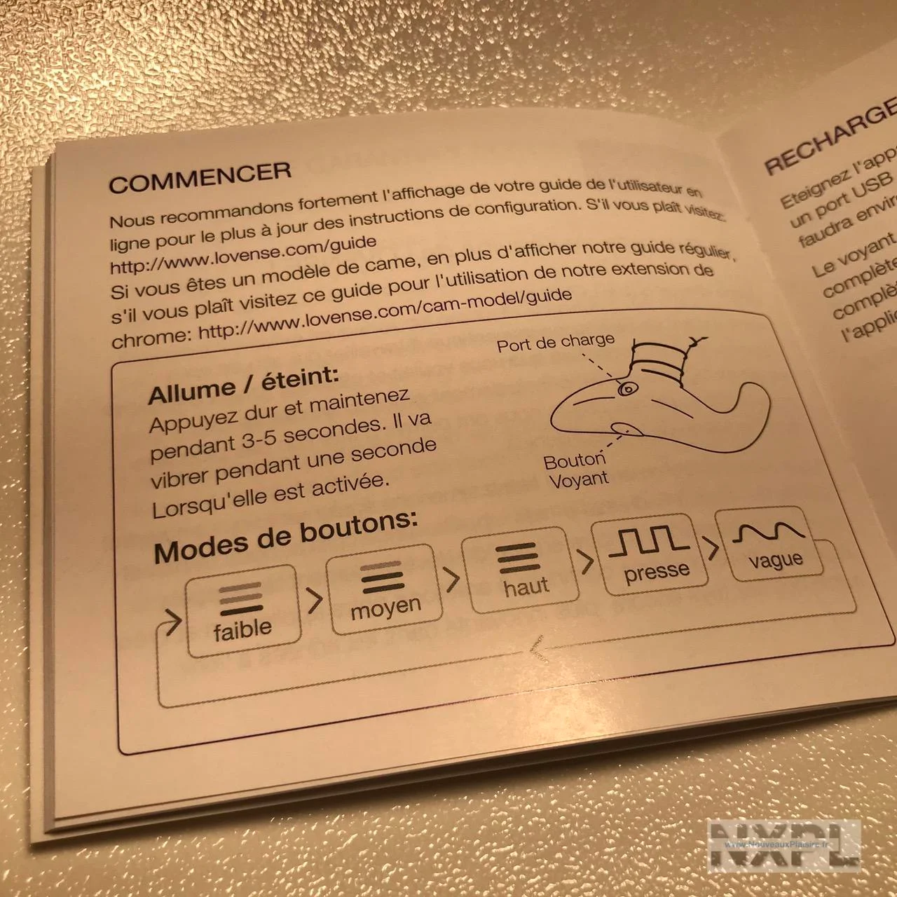 Dans la boîte, on retrouve le Lovense Hush, le câble USB de rechargement isolé dans un petit étui et le guide d’utilisation (en français).