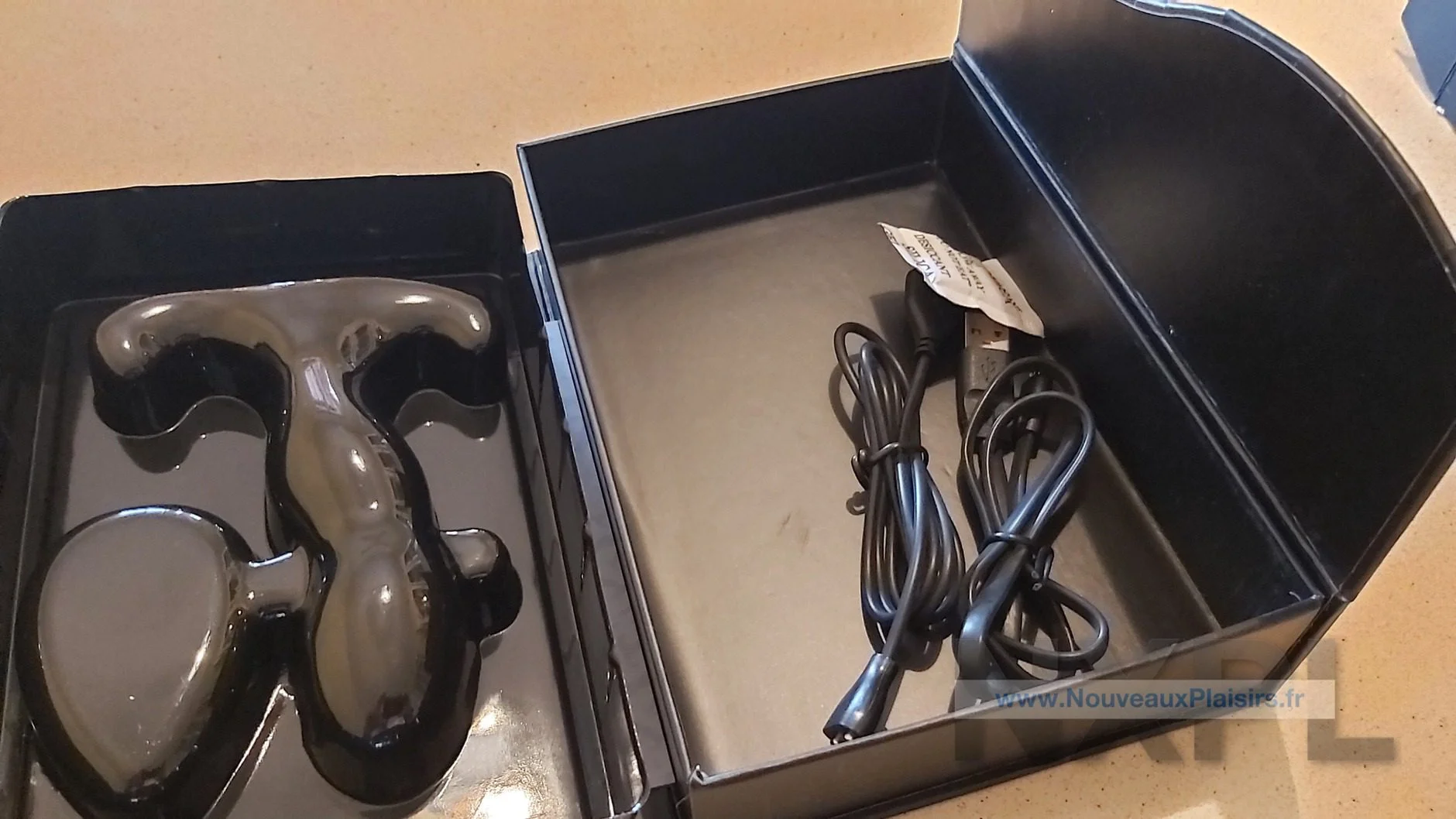 Le contenu de la boîte est relativement classique. On y trouve évidemment l’Aneros Vice 2 posé dans un socle en plastique (pas très écolo, mais passons), une télécommande, deux câbles de chargement (un pour la télécommande et l’autre pour le Vice 2), et un petit guide d’utilisation. Il est recouvert du silicone haut de gamme utilisé par Aneros sur ses sextoys en silicone, un silicone doux qui, une fois lubrifié, glisse plutôt très bien.