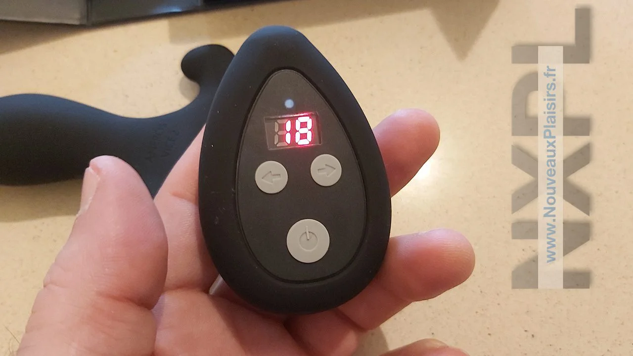Je commence à explorer les patterns avec la télécommande. Les deux moteurs se trouvent dans le corps et créent des patterns de vibrations qui jouent avec la profondeur, des sphincters jusqu’à la prostate. Je n’ai jamais ressenti des patterns aussi enveloppants. Franchement, c’est très intéressant le travail de ces deux moteurs ; ils arrivent à créer une interaction que je n’ai jamais vue dans les autres masseurs prostatiques. Impossible de décrire les 18 programmes ; il y a évidemment la vibration constante en 1, mais les 17 autres sont des combinaisons d’aller-retour des vibrations entre la base et la tête.