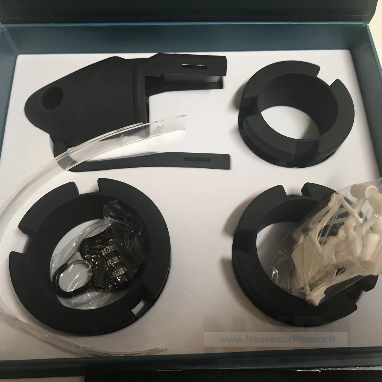 L’ensemble respire la qualité, le silicone est vraiment très très doux, il y a 3 anneaux, deux boucles pour fermer, des cadenas en plastique et un cadenas métallique à code.