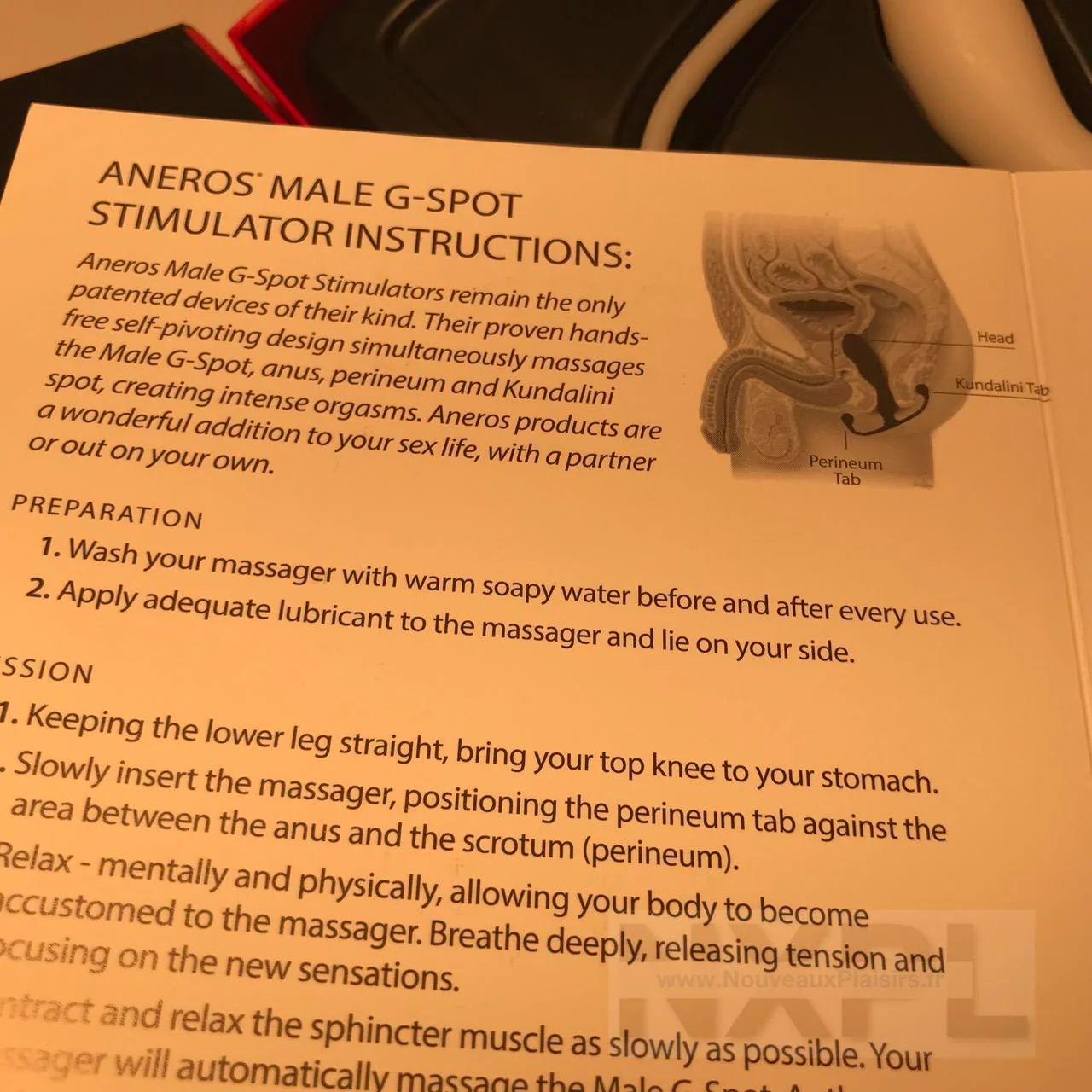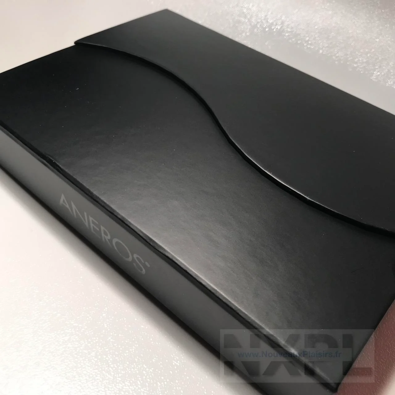 L’avantage de cette boîte noire est qu’elle est discrète. Du coup, si l’on met de coté l’emballage, la boîte en carton noire peut alors être posée là où l’on veut dans ta table de chevet sans attirer l’attention. Bravo à la marque Aneros pour cela.