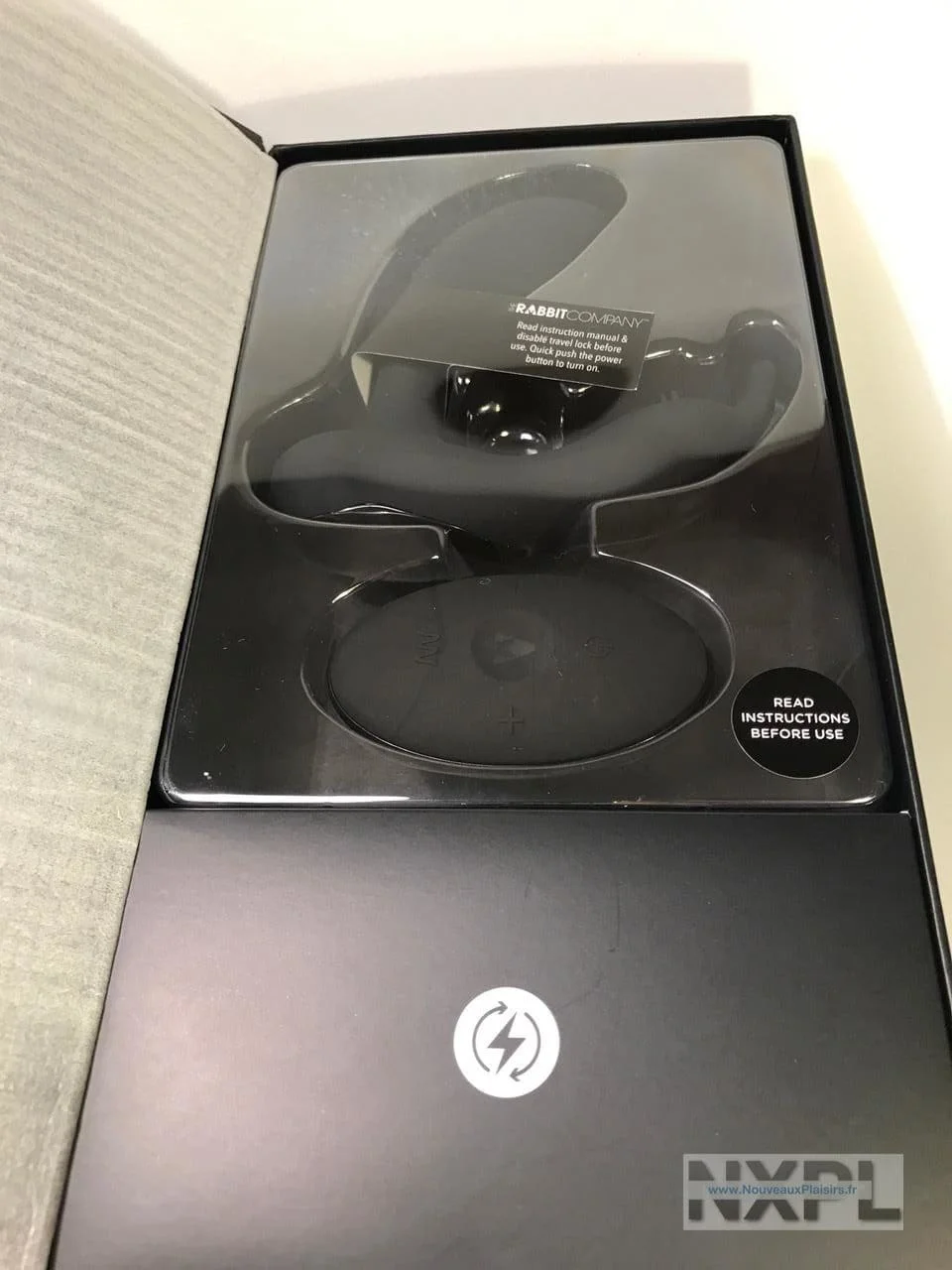 Quand on ouvre l’emballage, on retrouve le Prostate Rabbit protégé par un couvercle en plastique transparent. Dessous se trouve l’appareil logé dans son socle avec, juste sous lui, la télécommande. Si l’on soulève le socle, on retrouve le câble USB de chargement et un petit guide d’utilisation. Dommage qu’il n’y ait pas de pochette pour le ranger.