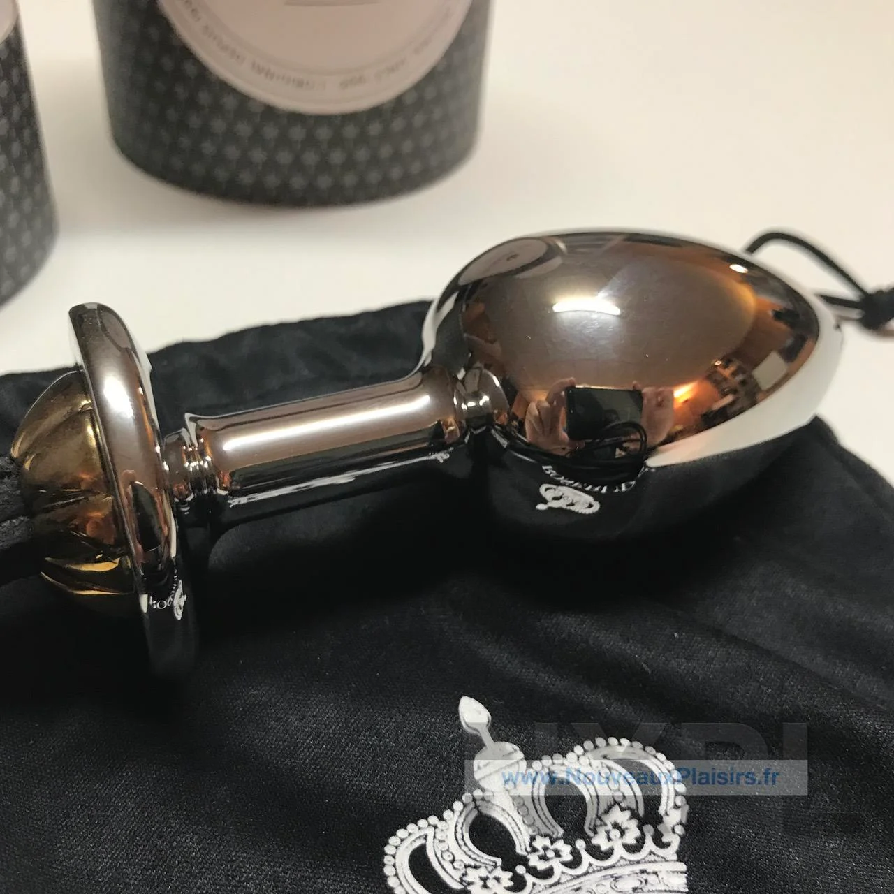Le plug est absolument sublime, en acier parfaitement poli, et sa base est constituée de lanières de cuir marron. Ce n’est pas beau, c’est absolument à tomber !