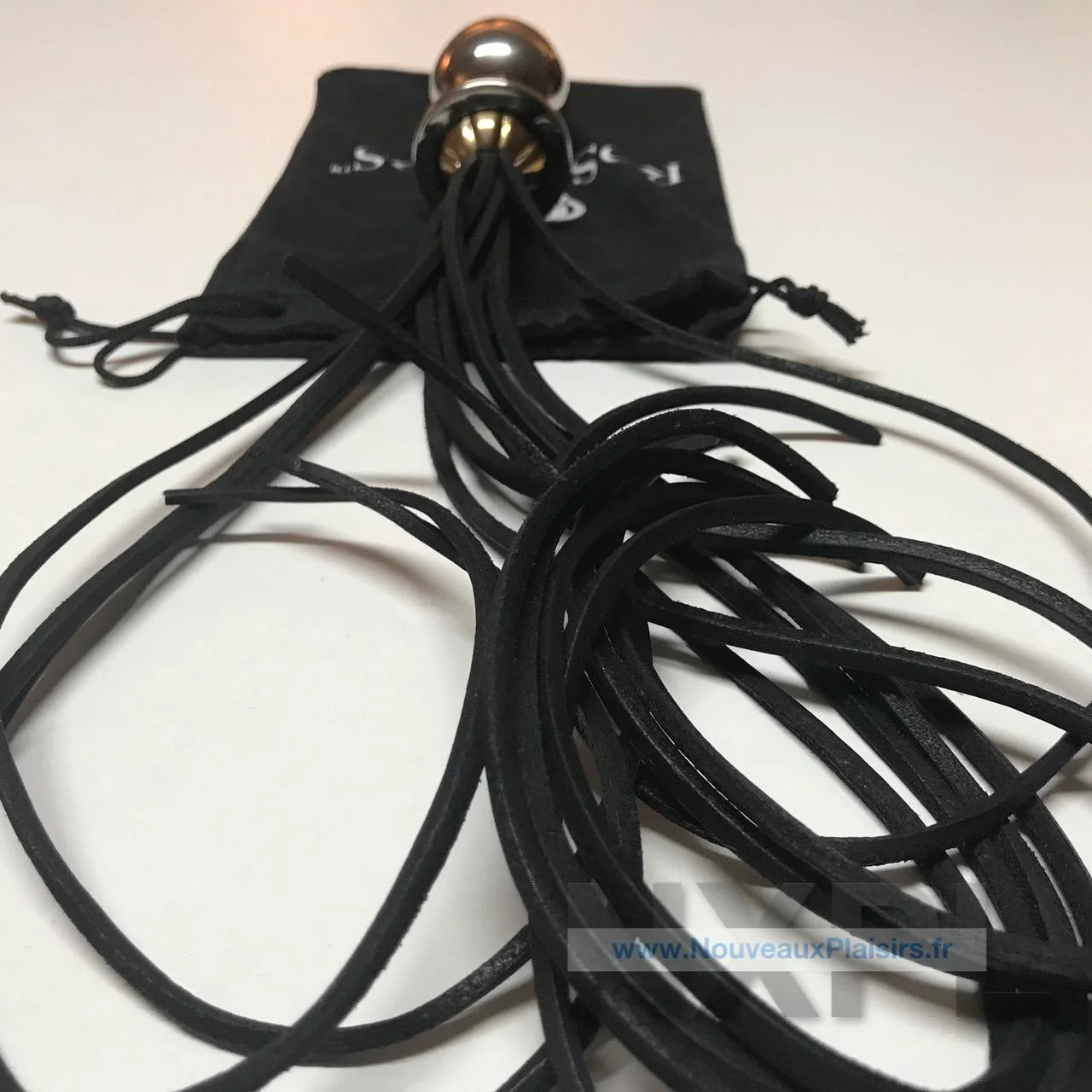 Bien évidemment, on peut l’utiliser aussi coté lanières. Il devient alors un martinet efficace qu’il faut manipuler avec tact et expérience. Les lanières sont longues et donc potentiellement cinglantes. Moi j’ai préféré les utiliser pour réveiller le corps de ma compagne, les faire glisser le long de son corps et jouer un peu sur l’impact sans objectif de faire mal mais plutôt de surprendre.