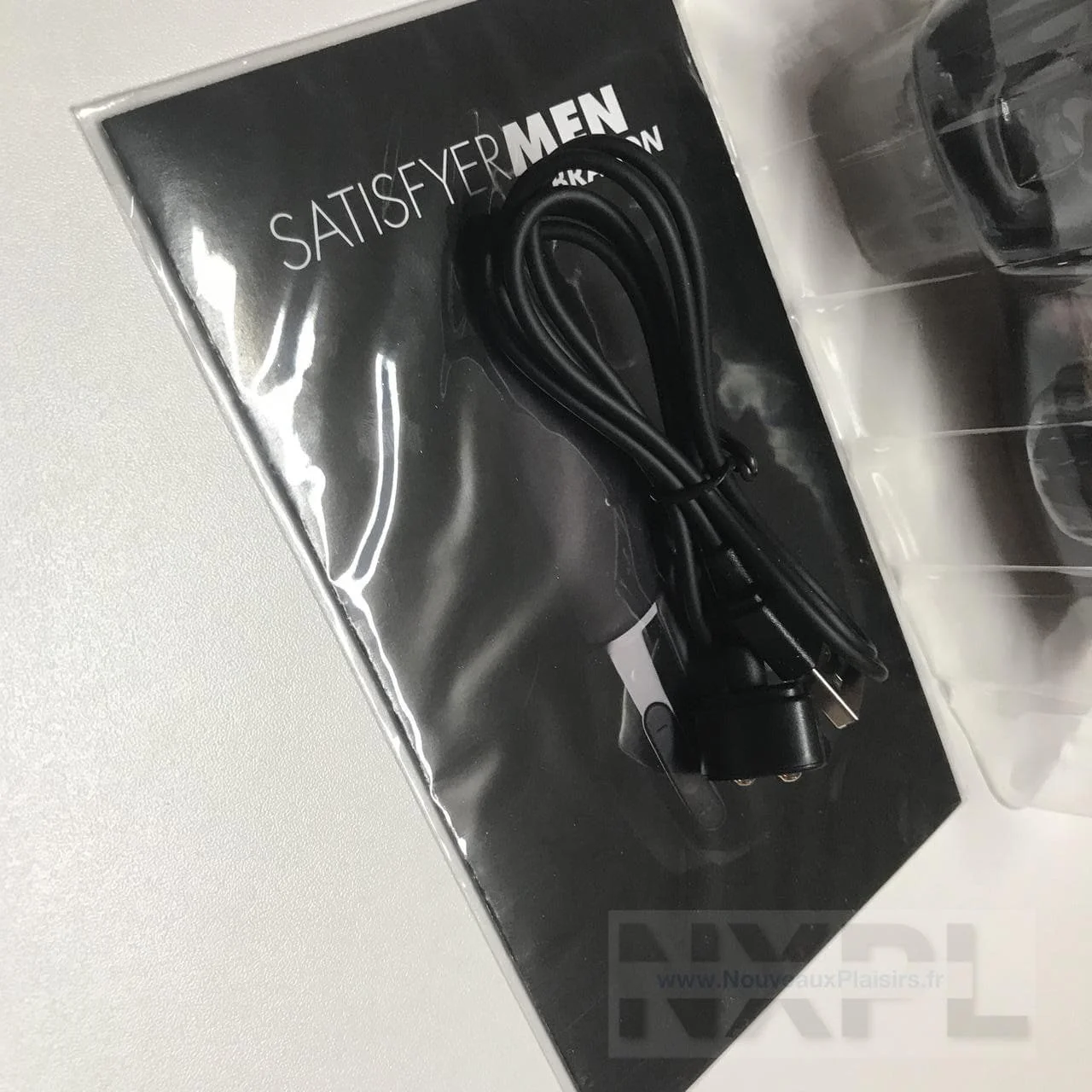 Quand on ouvre le carton, on retrouve le Satisfyer Men Vibration dans un berceau en plastique transparent accompagné par son cordon de rechargement (c’est un cordon USB) et par le guide d’utilisation.