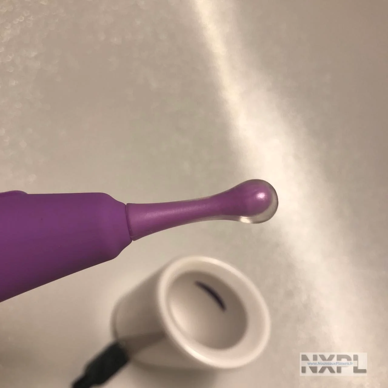 Principale différence d’apparence avec le Zumio Original, le Zumio Caress dispose d’une pointe stimulante en plastique cette fois-ci entourée de silicone transparent ce qui la rend beaucoup moins “agressive” et dure. On verra cela dans le test.