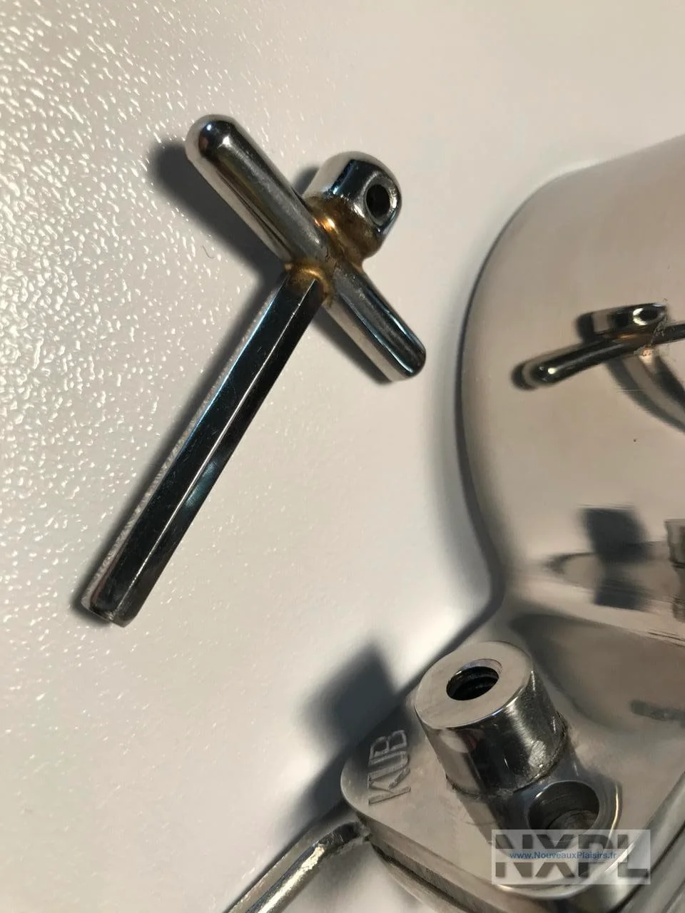 Les menottes Kub sont sublimes, elles sont tout en acier, pèsent plus de 500 grammes (ça c’est chouette), disposent d’une boucle pour y attacher une laisse, une corde ou une chaine, se ferment à l’aide d’une clef Allen qui sert à visser/dévisser le système de fermeture.