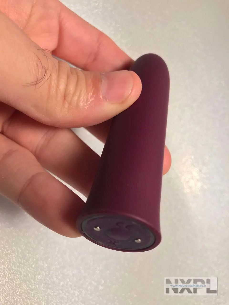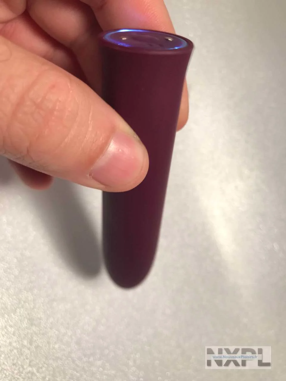 Le Loïca est étonnement petit, il mesure 10 cm de long pour un diamètre de 2,4 cm. J’ai un modèle mauve du plus bel effet. Le revêtement du Loïca est du silicone, il est très fin, et du coup, il donne un petit aspect pêche au touché mais le sextoy reste aussi dur que du plastique à la pression. C’est parfait pour un mini vibromasseur je trouve.