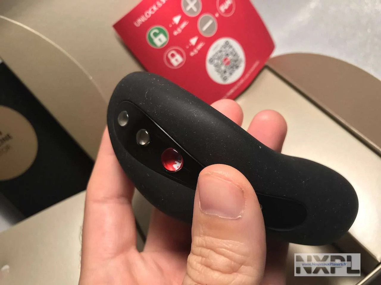 Vous connaissez ? C’est le système de chargement étanche et magnétique de Fun Factory. On approche la tête de chargement, TAC… elle se colle par magnétisme, est rouge quand elle charge, et devient verte quand c’est chargé.
