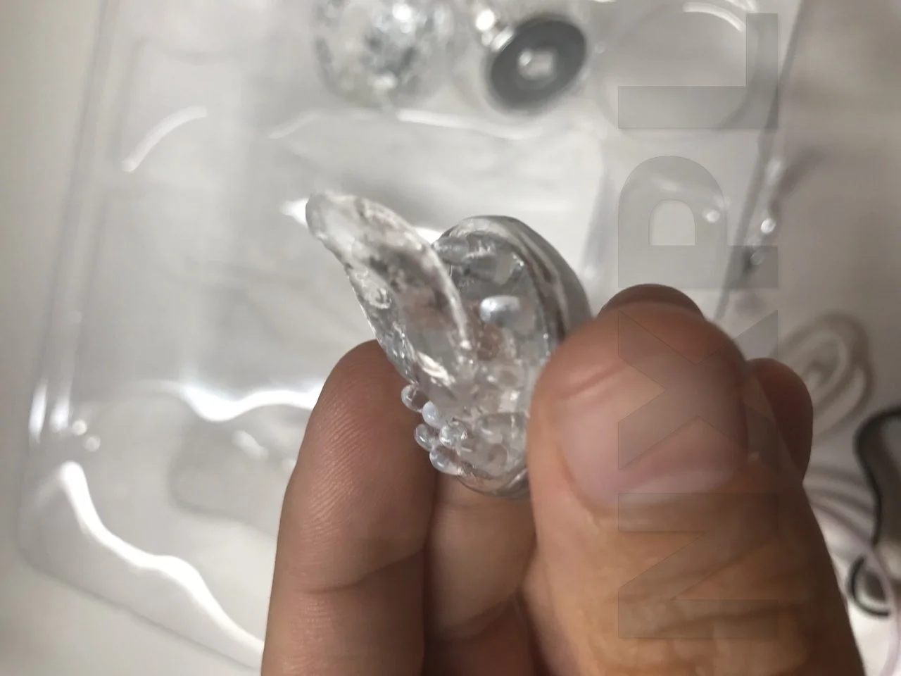 Comme vous pouvez le voir sur les photos, les embouts sont en silicone transparent et sont texturés. Ils sont magnétiques, cela veut dire qu’ils tiennent dans la cloche par magnétisme. C’est pratique et facile à enlever tout en adhérant au centre très bien. Rien à dire sur ça, cela fonctionne.