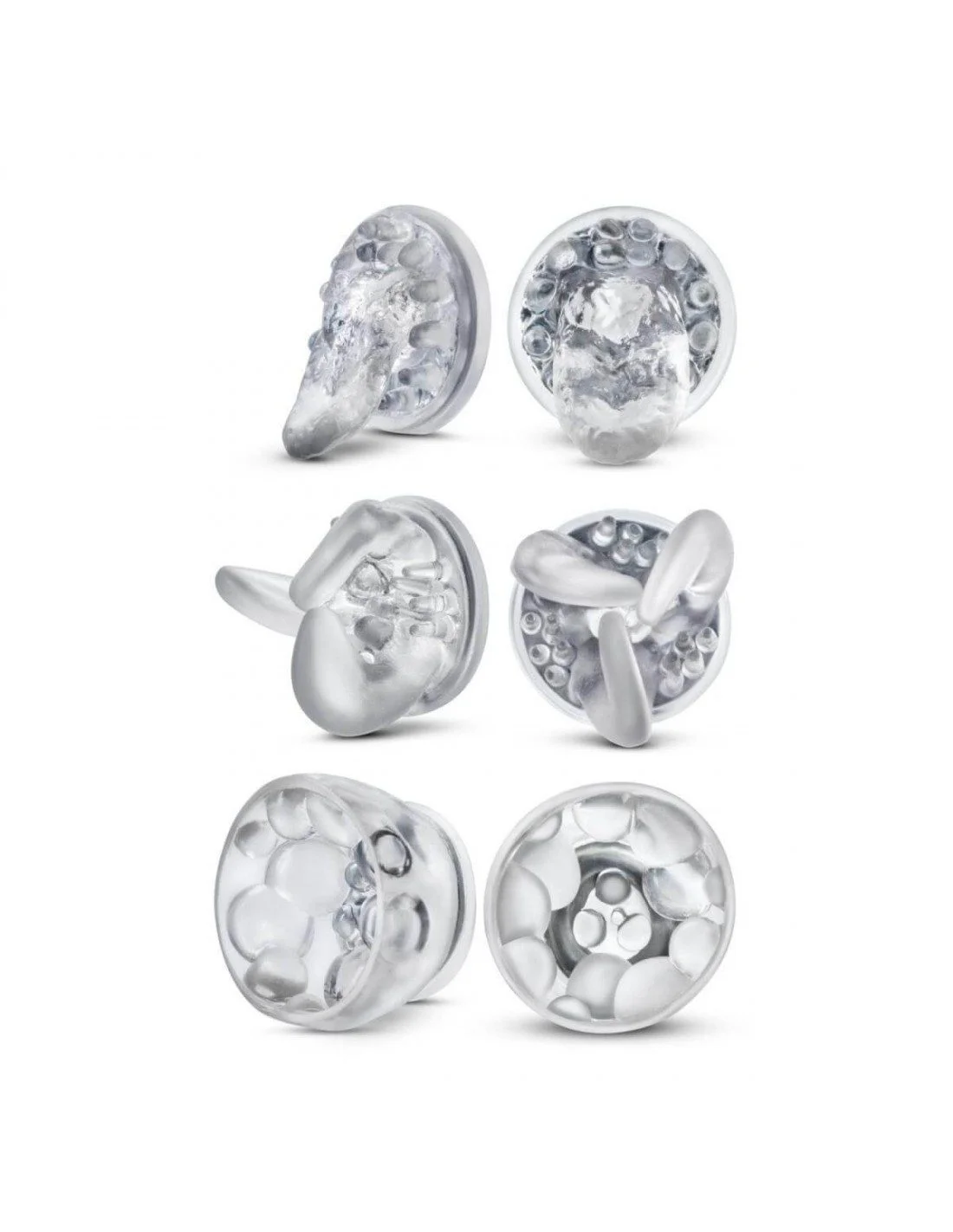 Il y a un embout pour les seins qui ont des tétons proéminents (le premier à gauche), le second englobe le téton (mon préféré, celui du milieu), le troisième ressemble à une langue (celui de droite).