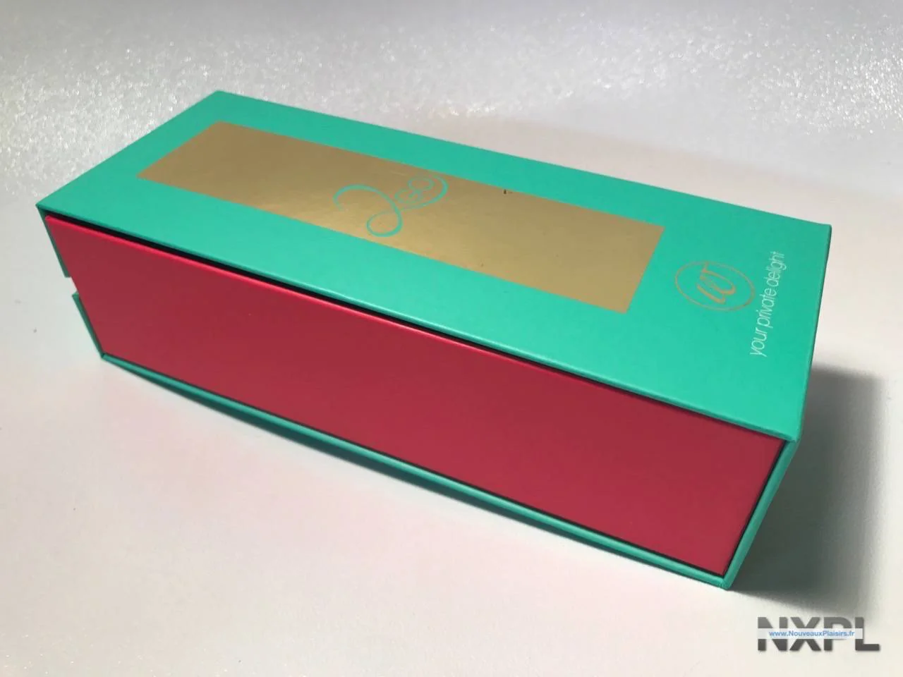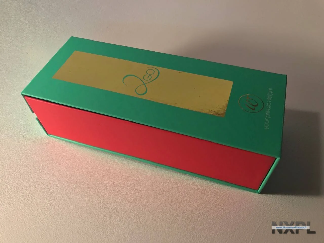 Pour revenir au Womanizer Go… Il est emballé dans une boîte rose, verte et or. J’avais déjà indiqué dans un précédent article que le design en chef de la marque Womanizer devait être sponsorisé par le syndicat des ophtalmologues, je dis ça, je dis rien, mais cela semble se confirmer…
